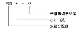 VSN-KR型双线分配器上下面均有出油口,分配器活塞正反向动作时分别从上面和下面的出油口排出润滑脂,也可以从指示杆的动作直接观察分配器的工作情况,还可以通过调整螺钉在规定范围内调整各出油口的给油量。