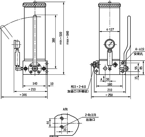 3、泵上压力表指示压力值上升保持稳定,证明系统给油器全部动作完毕。