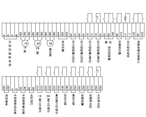 该产品的性能参数及尺寸应符合表和图中的规定;装置由油站、仪表盘、电控柜(可用 PLC 控制)成套组成。