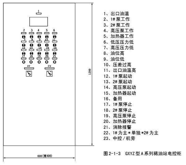 稀油站成套供货时配有仪表和电控箱,以显示运行参数和实现稀油站自控、手控或报警。