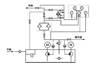 稀油站是稀油循环系统的心脏,用来将润滑油液强制地压送到机器的摩擦部位。在相对运动的机器零件间形成油膜,减少零件的摩擦、磨损,同时对摩擦部位进行冲洗,并带走摩擦产生的热量,保证机器正常运转,延长机器使用寿命。