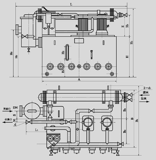 稀油站工作介质粘度等级为N22~N320的工业润滑油,公称压力为0.4MPa,过滤精度0.08~0.12mm;冷却水温≤28℃;冷却水压力0.2~0.3MPa;冷却器进油温度为50℃,温降7~8℃;使用蒸汽加热时蒸汽压力为0.2~0.4MPa。